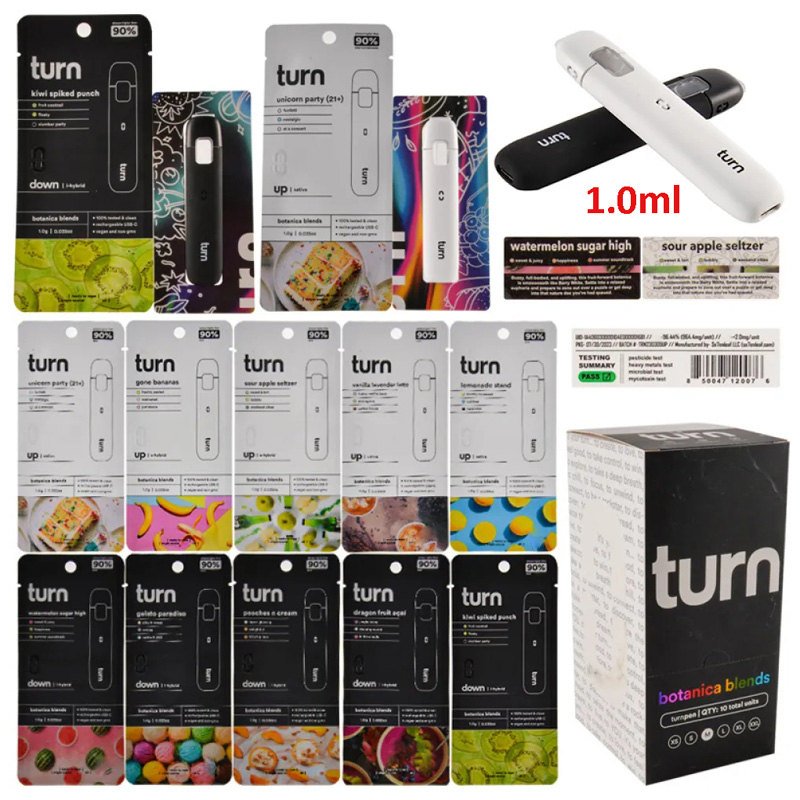 - Vape Pen Colors: black (Turn Down disposable vape pen), white (Turn Up disposable vape pen)